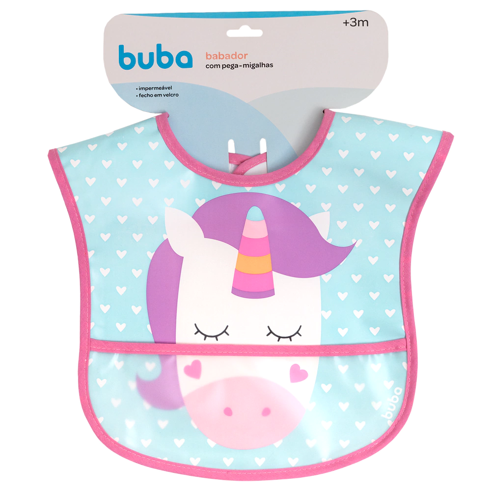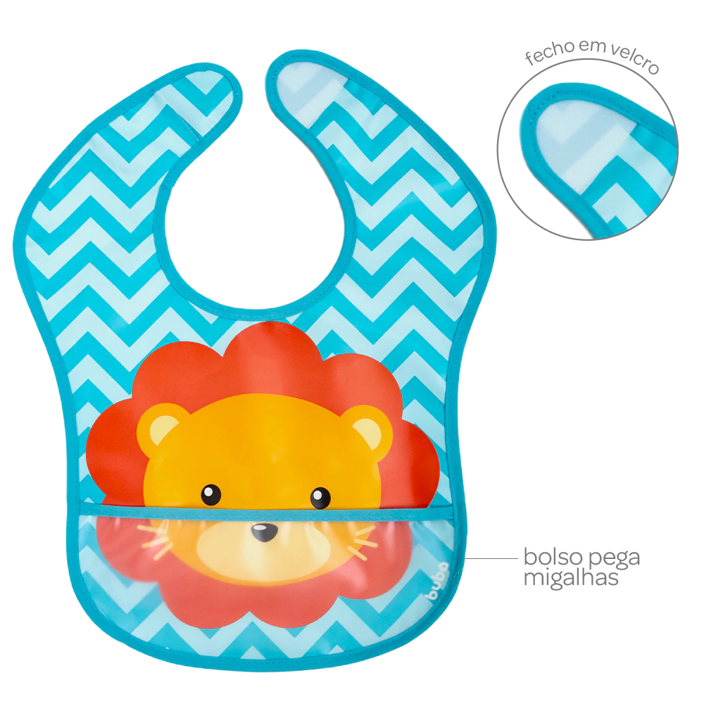 Desenvolvido para bebês a partir de 3 meses, este babador é confeccionado em 100% Acetato de Vinil de Polietileno (PEVA), um material resistente e totalmente impermeável. A coleção Animal Fun traz estampas vibrantes e divertidas, como leão e unicórnio, tornando a hora da papinha ainda mais alegre. O bolso pega-migalhas integrado é essencial para coletar os alimentos que caem, evitando sujeira e facilitando a limpeza pós-refeição. Seu fecho em velcro proporciona um ajuste fácil e seguro ao pescoço do bebê, garantindo conforto e mobilidade.