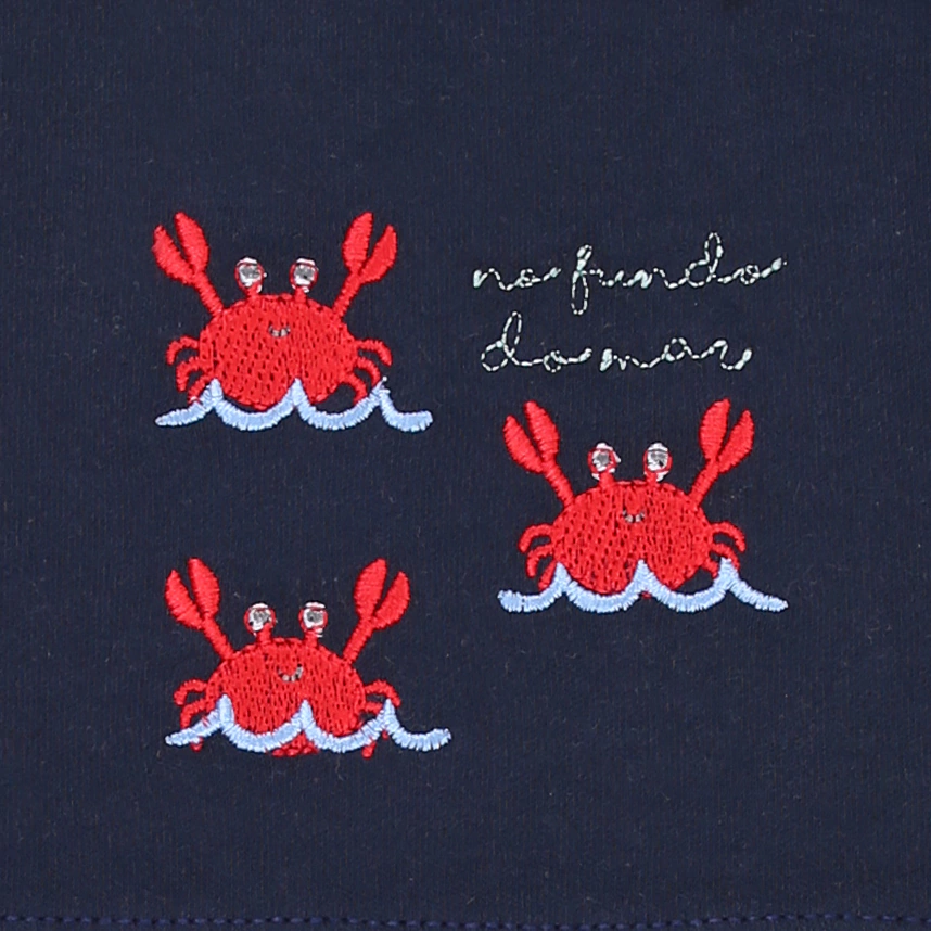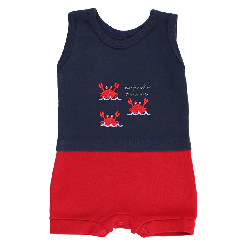 Banho De Sol Bebê Estilinho Suedine Bordado Caranguejo