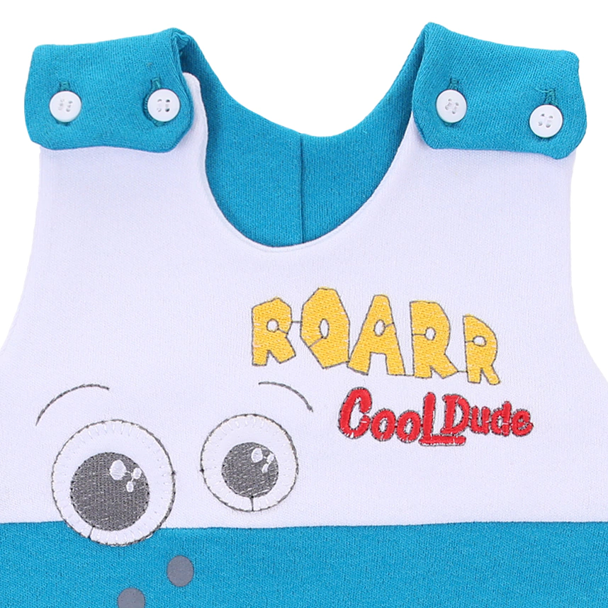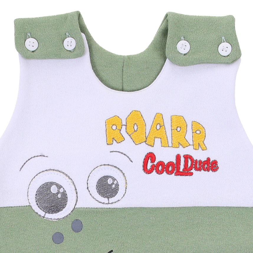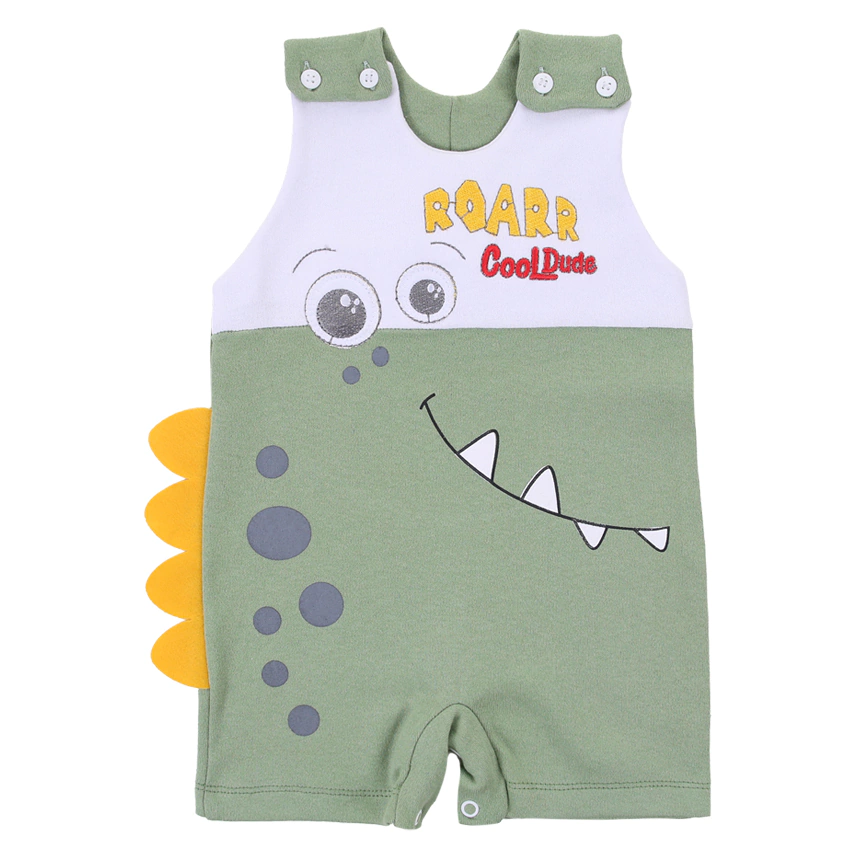 O Banho de Sol Petutinha é perfeito para os dias mais quentes, oferecendo conforto e estilo para meninos de 1 a 12 meses. Este modelo encantador apresenta um bordado de dinossauro na parte frontal, complementado por uma estampa e um aplique de feltro que imita as escamas do dinossauro, proporcionando um toque lúdico e texturizado. Confeccionado em tecido leve e arejado, garante conforto e liberdade de movimento para o seu pequeno.