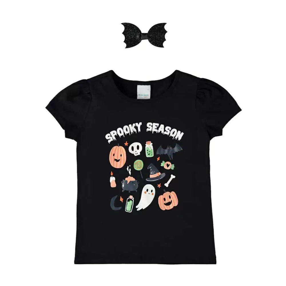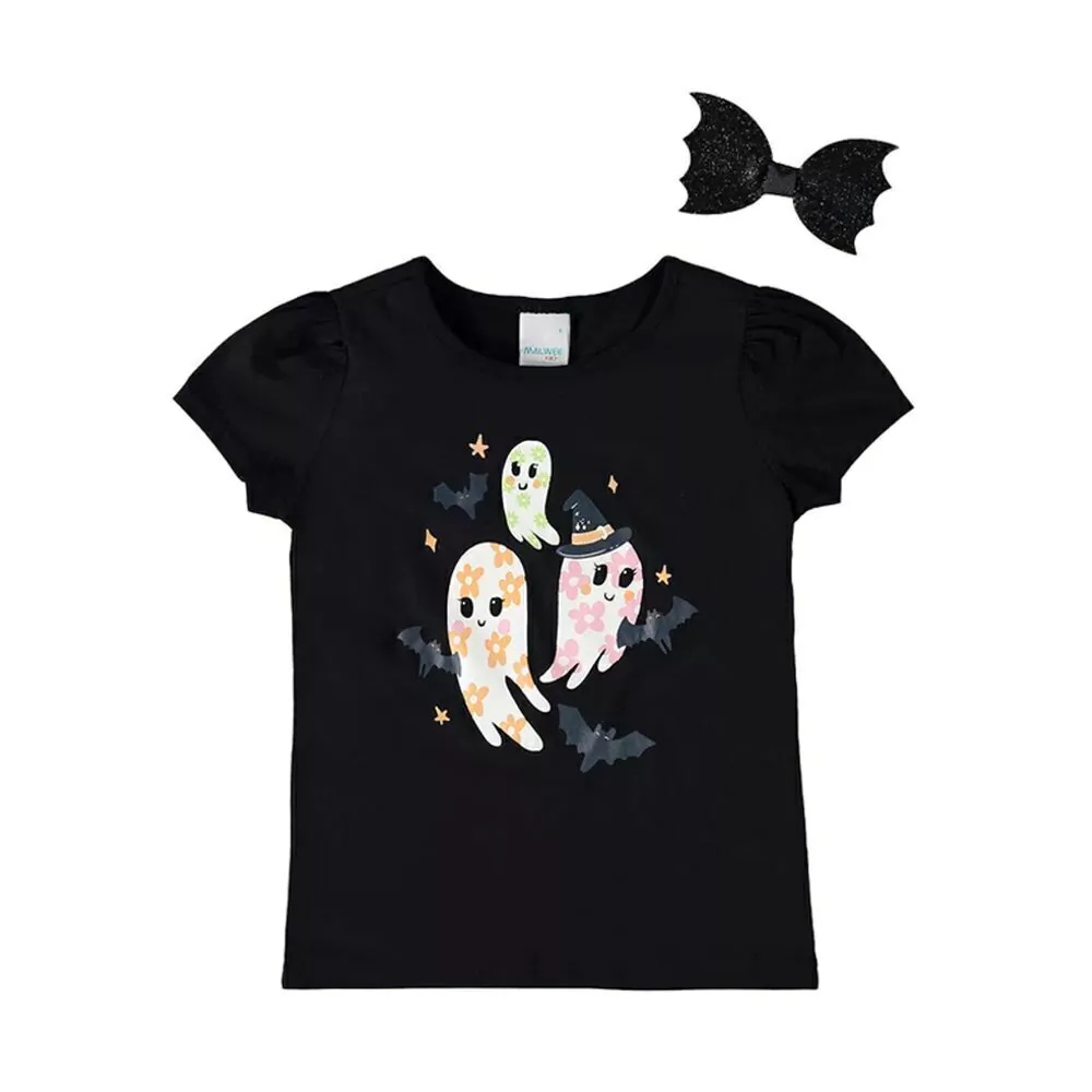 A Blusa Malwee é ideal para meninas de 4 a 8 anos. Confeccionada em meia malha 100% algodão, apresenta decote redondo, mangas com franzido e estampa que brilha no escuro. Além disso, a blusa vem acompanhada de uma presilha de cabelo.