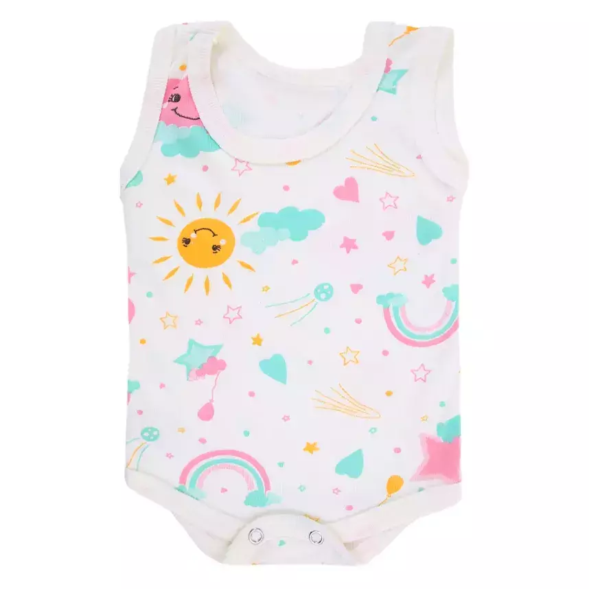 Desenvolvido pela marca Top Chot, este body regata de bebê é confeccionado em uma combinação suave de 67% algodão e 33% poliéster, apresentando uma delicada malha canelada. Ideal para manter o bebê fresquinho e confortável, especialmente em dias mais quentes. O design estampado e colorido adiciona um toque de alegria ao guarda-roupa, perfeito para bebês do RN ao G (0 a 12 meses). A peça possui fecho inferior por botões de pressão, facilitando as trocas de fralda e garantindo um ajuste seguro.