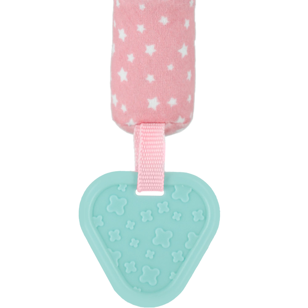 Alívio para a Dentição: Possui um mordedor integrado de Polietileno, ideal para massagear as gengivas e aliviar o desconforto causado pelo nascimento dos primeiros dentinhos.