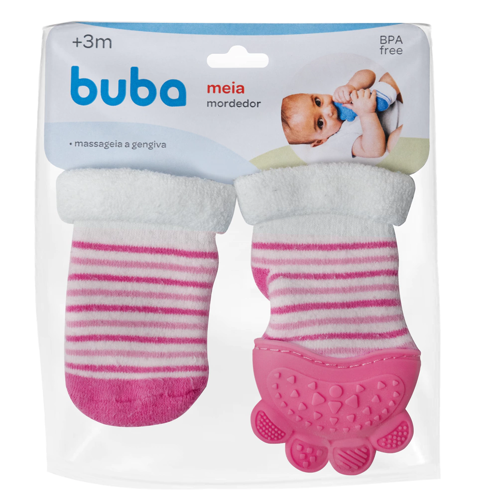A Meia com Mordedor Buba é a solução perfeita para entreter e proporcionar alívio para a gengiva do seu bebê durante a fase dos primeiros dentinhos.
