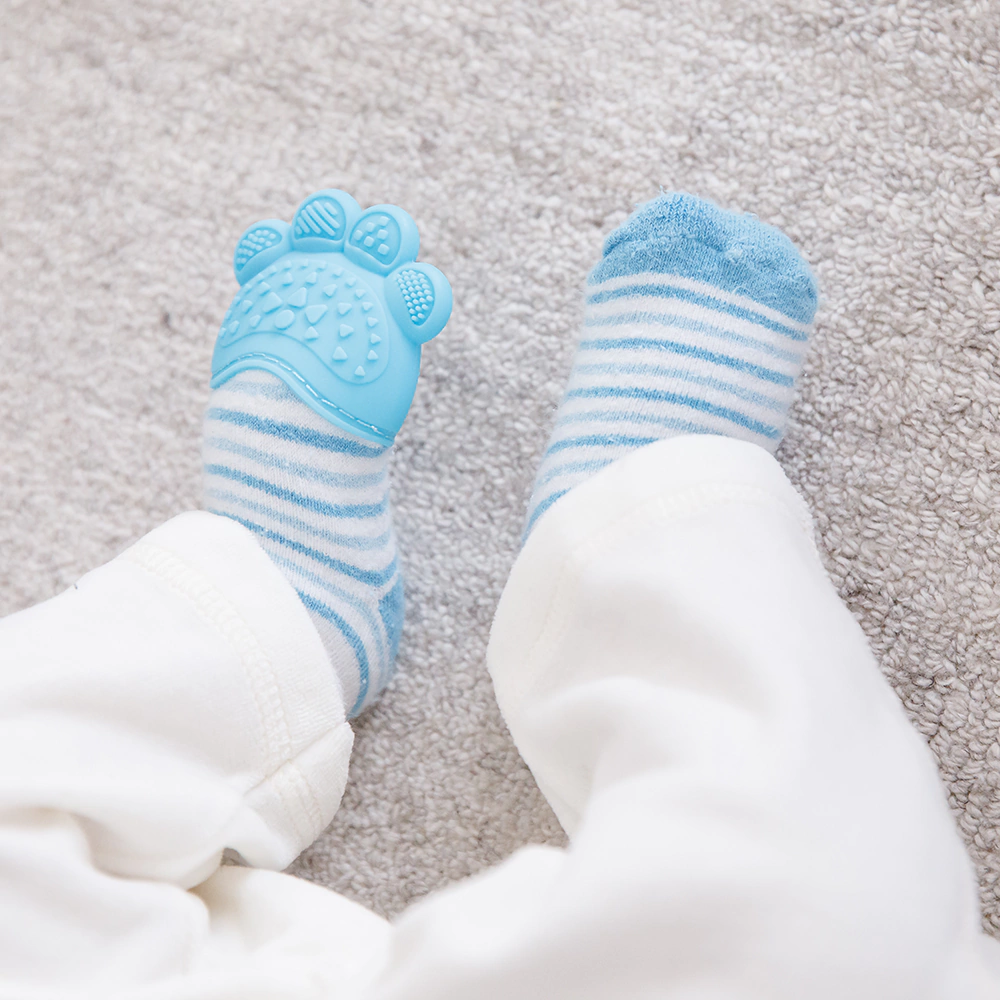 Entretenimento garantido: Além do alívio, a meia com mordedor oferece uma forma divertida de entreter o bebê, mantendo as mãos livres para outras atividades.