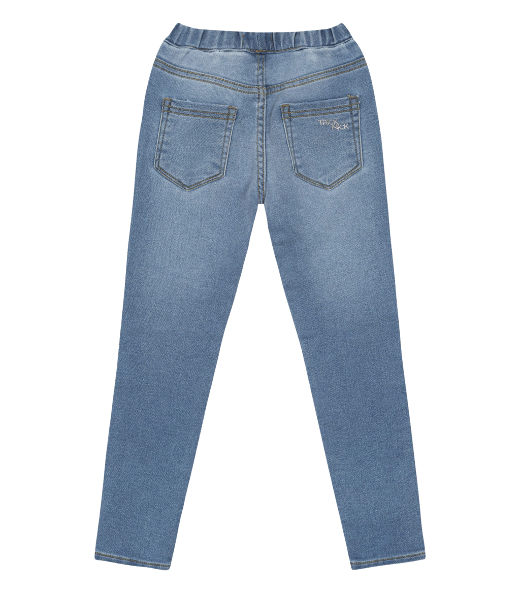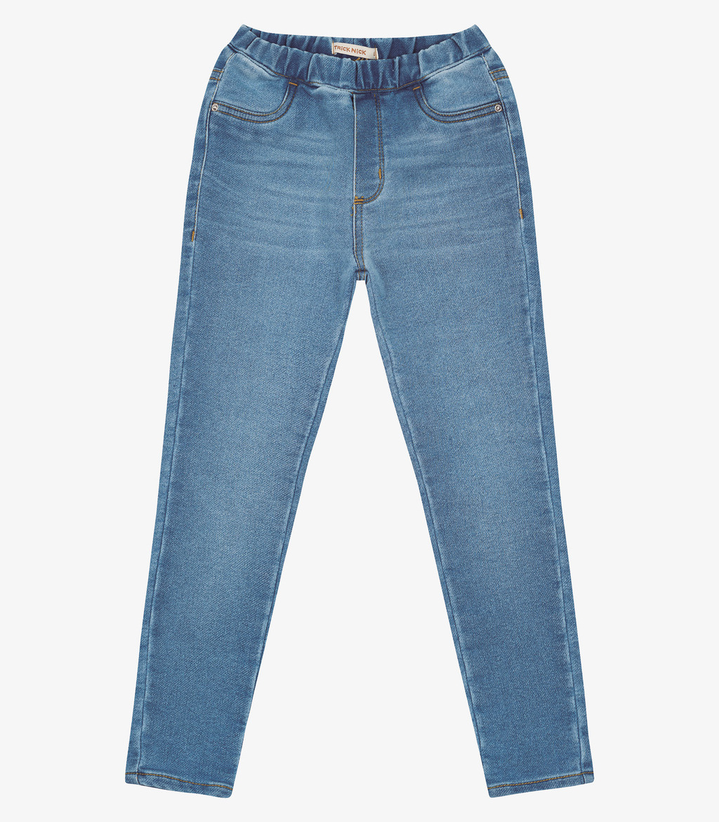 A Calça Infantil Feminina Jegging Trick Nick é a escolha perfeita para as pequenas cheias de estilo e conforto. Confeccionada em comfort denim, a peça oferece suavidade e durabilidade, permitindo total liberdade de movimento. Seu cós embutido com elástico proporciona um ajuste perfeito e confortável. Com bolsos fake na parte da frente e bolsos funcionais traseiros, a calça combina funcionalidade com um toque moderno. Além disso, possui um aplique termo colante no bolso traseiro.