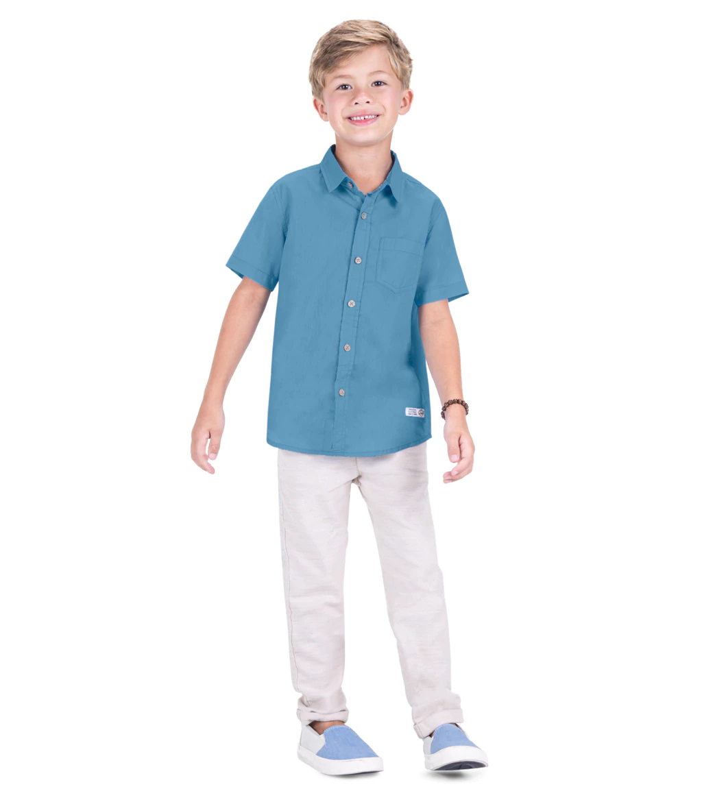 A Camisa social infantil menino Trick Nick lisa manga curta combina elegância e conforto para os pequenos.