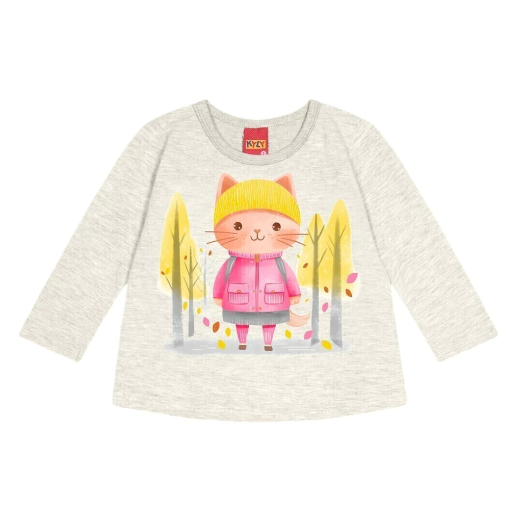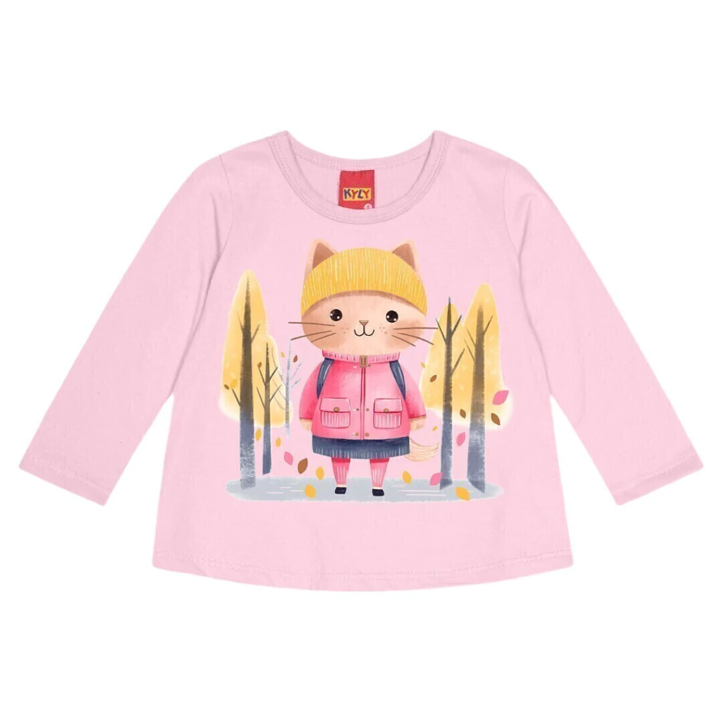 Camiseta manga longa de bebê com estampa - a Blusa de Gatinho Infantil Menina Kyly é uma escolha fofa e confortável para sua pequena.