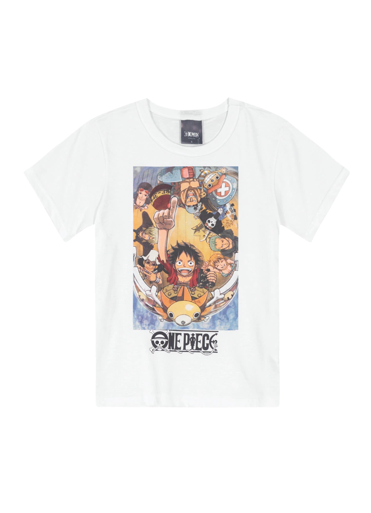 Vista seu pequeno com a CAMISETA M/MALHA One Piece e deixe-o pronto para conquistar todos os mares (ou o parque do bairro)! 🏴☠️