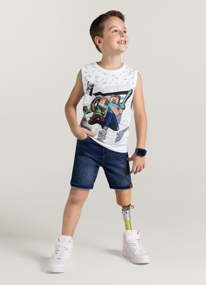 Atenção, pequenos aventureiros! A Regata M/Malha Minecraft chegou para transformar os seus dias em verdadeiras aventuras pixeladas! Disponível nas cores Branco e Azul, e tamanhos variados de 6 a 14 anos, essa regata é perfeita para explorar o mundo do Minecraft com muito estilo e conforto.