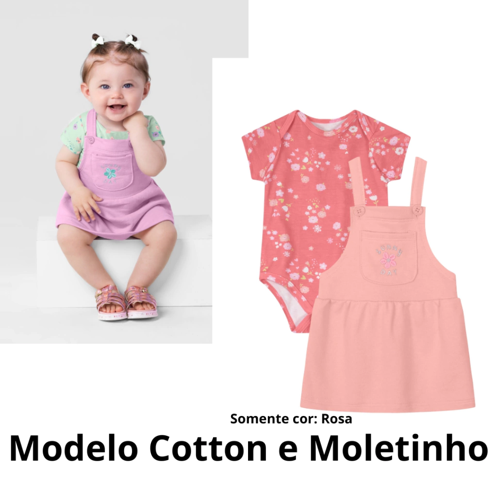 Transforme o guarda-roupa da sua pequena com o Conjunto Bebê Menina Body Cotton e Salopete em Moletinho! Este conjunto irresistível é a escolha perfeita para garantir conforto e estilo em todos os momentos.