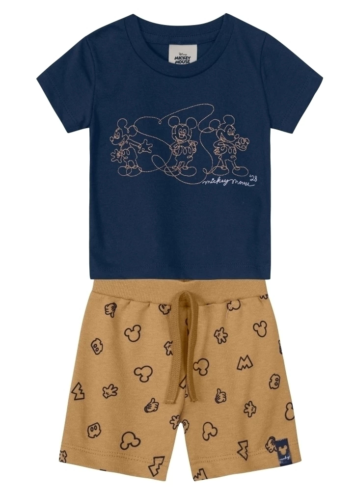 Produto: Conjunto bebê menino Disney Mickey Mouse de Camiseta Meia Malha alto relevo Bermuda Moletinho licenciado