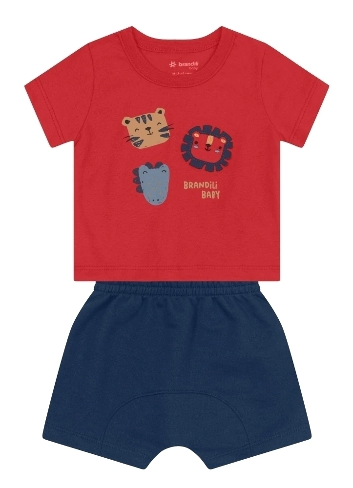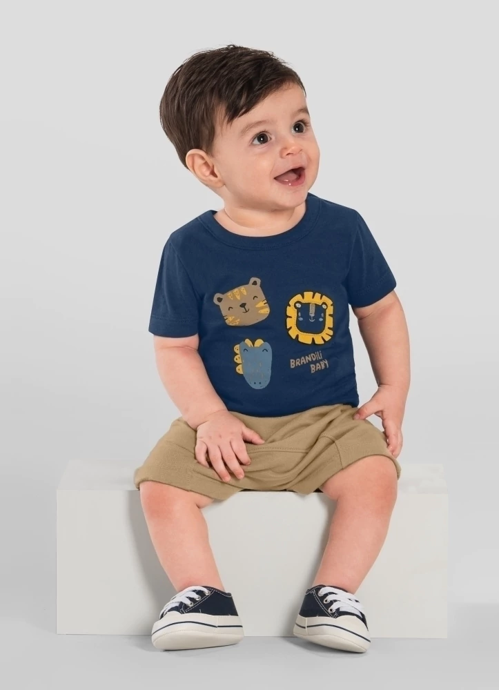 A camiseta em meia malha e a bermuda em moletinho, garantindo conforto e maciez para a pele delicada do bebê.