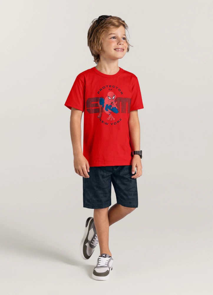 CONJUNTO DE CAMISETA MEIA MALHA E BERMUDA MOLETINHO Homem Aranha