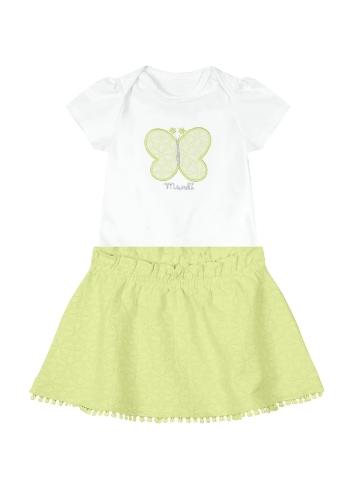 O Conjunto infantil menina de Body e Saia Clochard Cotton Brandili é a escolha perfeita para vestir sua bebê com conforto e charme. Composto por um body de algodão macio, que apresenta uma delicada estampa de borboleta, e uma saia clochard moderna na cor amarela, este conjunto bebê feminino foi cuidadosamente desenhado para o dia a dia das pequenas. A qualidade Brandili garante durabilidade e bem-estar, ideal para brincar e explorar o mundo com toda a liberdade.