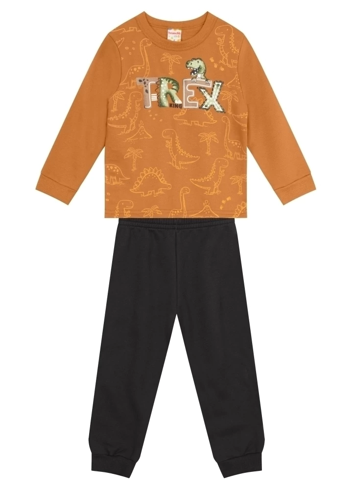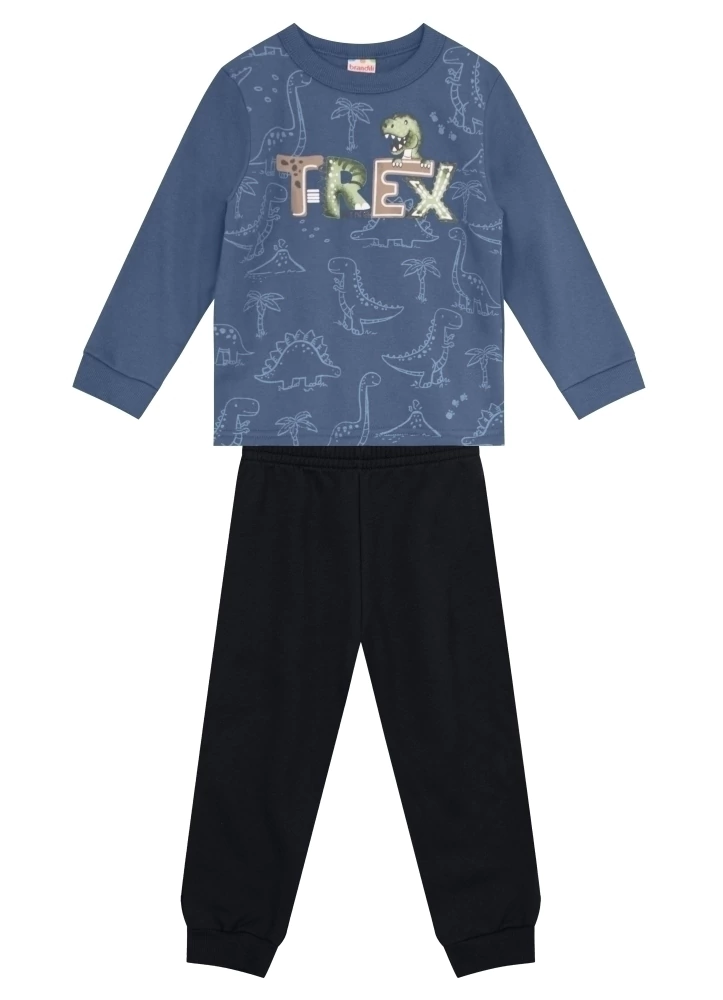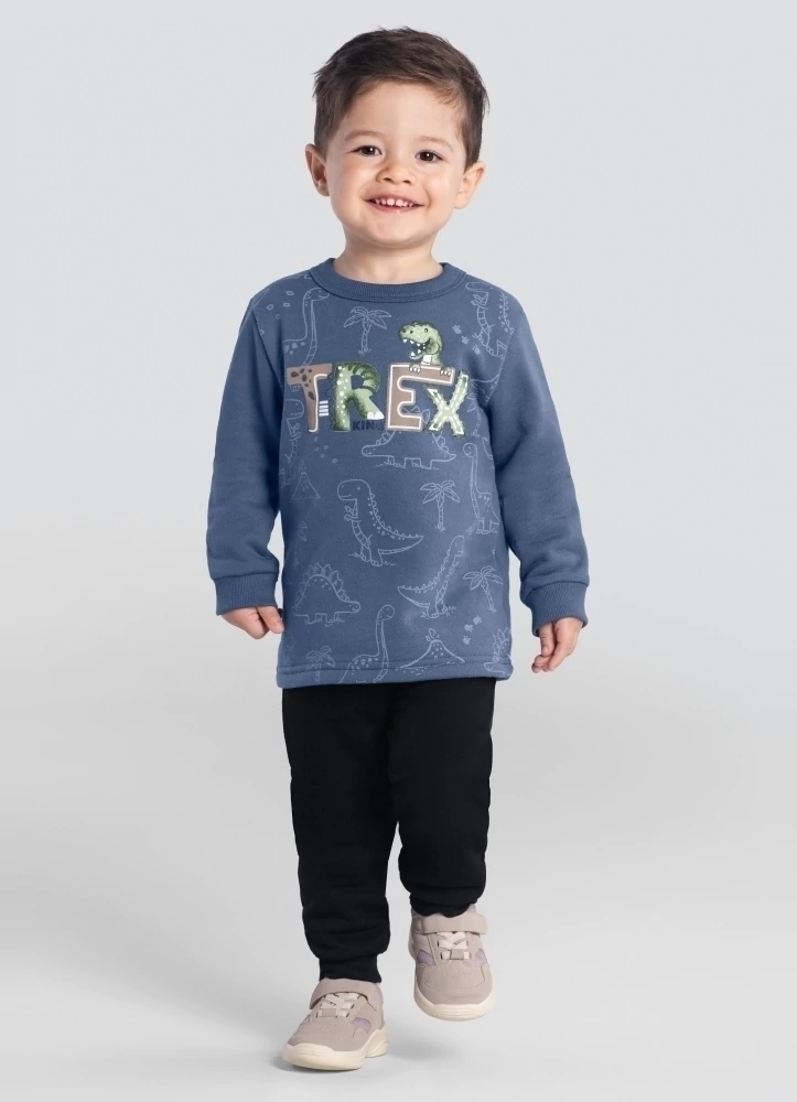 O Conjunto Infantil Menino de Blusão e Calça Jogger Moletom Brandili é a escolha certa para deixar os pequenos cheios de estilo e conforto. Com blusão e calça, ambos confeccionados em moletom macio e quentinho, esse conjunto traz uma estampa inspirada nos poderosos dinossauros, ideal para os pequenos fãs desses animais pré-históricos.