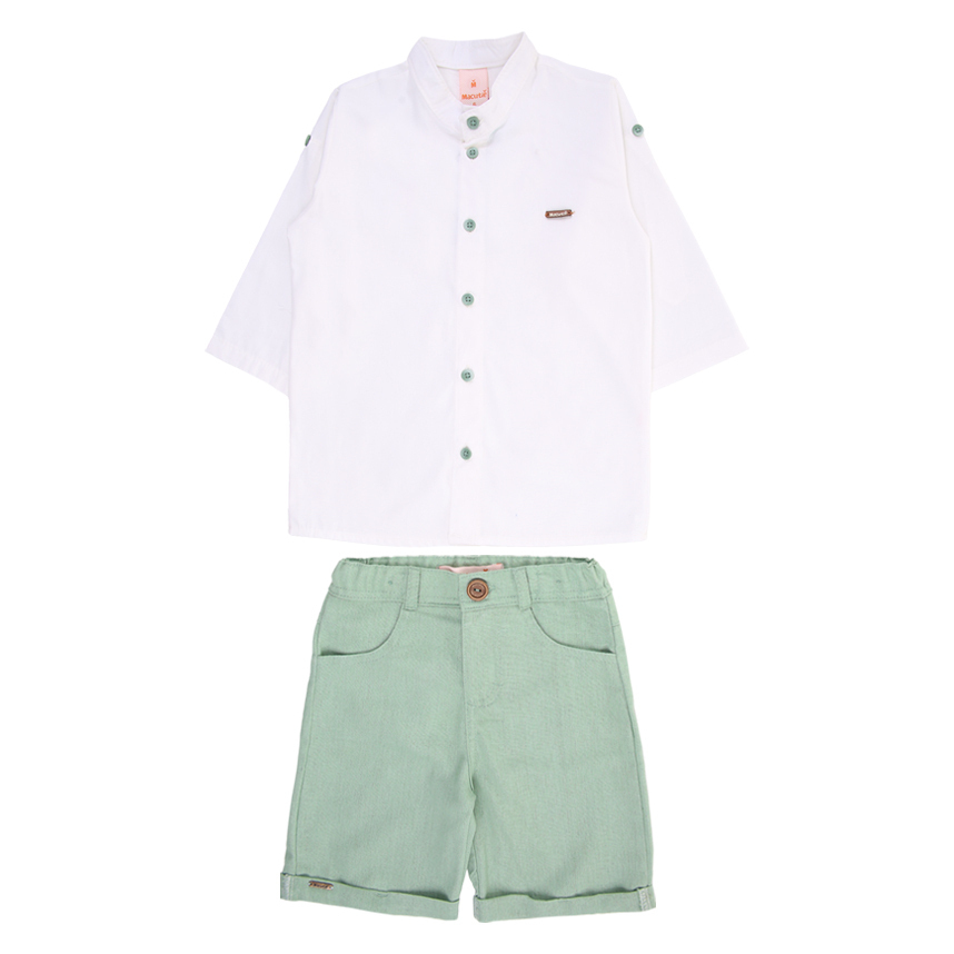 O Conjunto Macutie é confeccionado com um tecido de alta qualidade, proporcionando um toque suave e agradável na pele das crianças. A gola padre adiciona um charme especial, tornando a peça não apenas confortável, mas também estilosa.