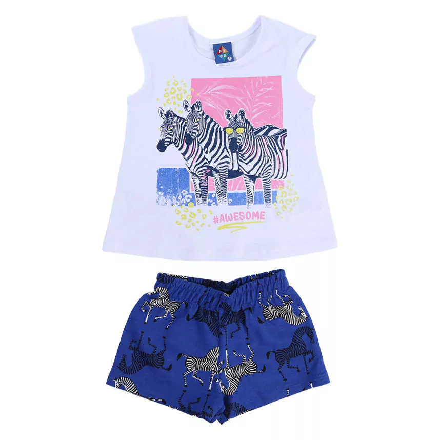 O Conjunto Pipa é a escolha ideal para vestir sua pequena com estilo e conforto. Composto por uma blusinha cavada e um shorts, o destaque fica por conta da divertida estampa de zebras, perfeita para crianças que adoram um look moderno e alegre.