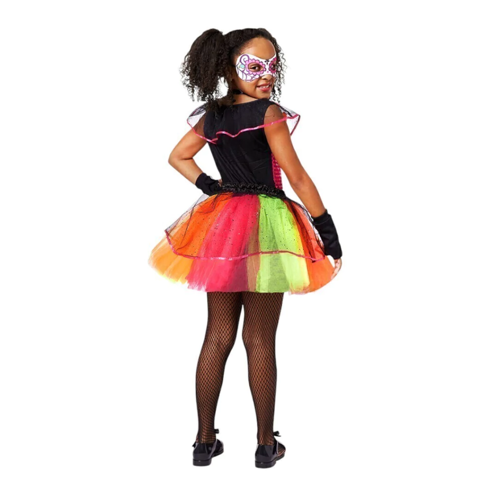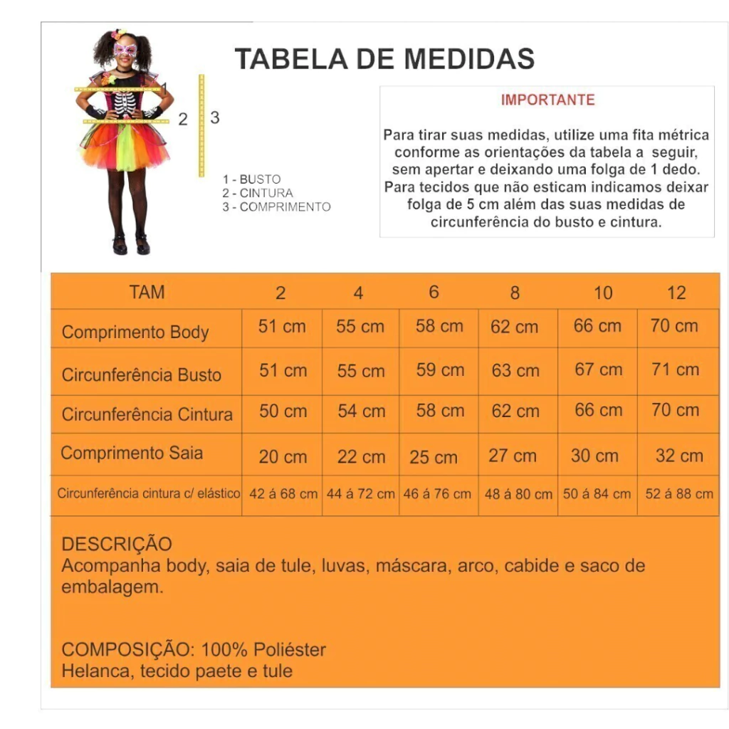 Descrição: Esta encantadora fantasia infantil é perfeita para festas, eventos e brincadeiras. O conjunto inclui um body, uma saia de tule, luvas, uma máscara, um arco, proporcionando um visual completo e adorável. Confeccionado em 100% poliéster, este conjunto garante durabilidade e conforto para os pequenos.