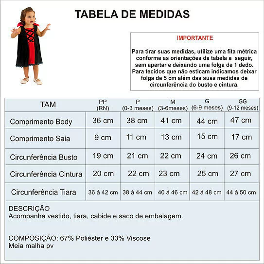 Leve e confortável, o Vestido Vampira Confort Infantil é perfeito para as pequenas se divertirem em datas especiais, como festas temáticas ou Halloween. Feito em tecido de alta qualidade, sua composição de 67% poliéster e 33% viscose garante maciez e resistência, ideal para o dia a dia ou eventos mais festivos.