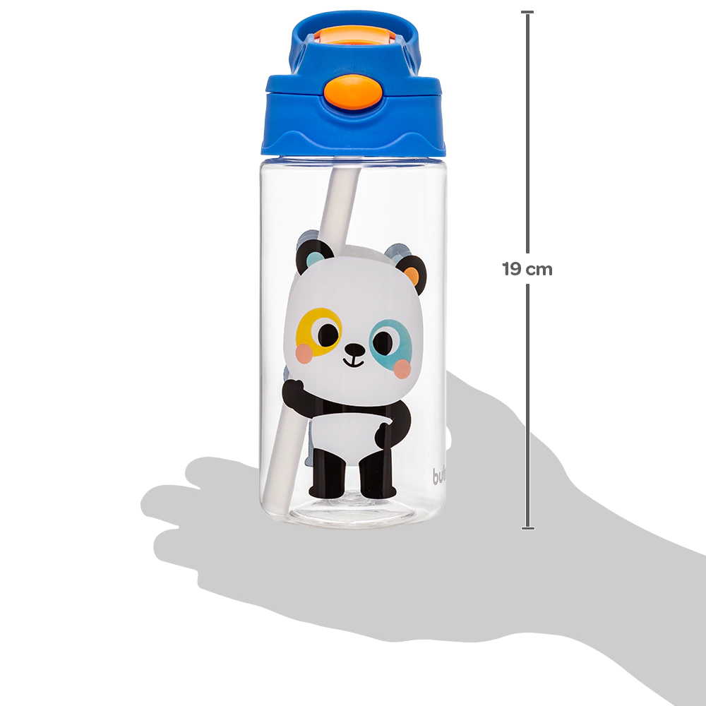 Design cativante: Com estampa exclusiva de panda do Buba Zoo, a garrafinha estimula a hidratação de forma divertida.