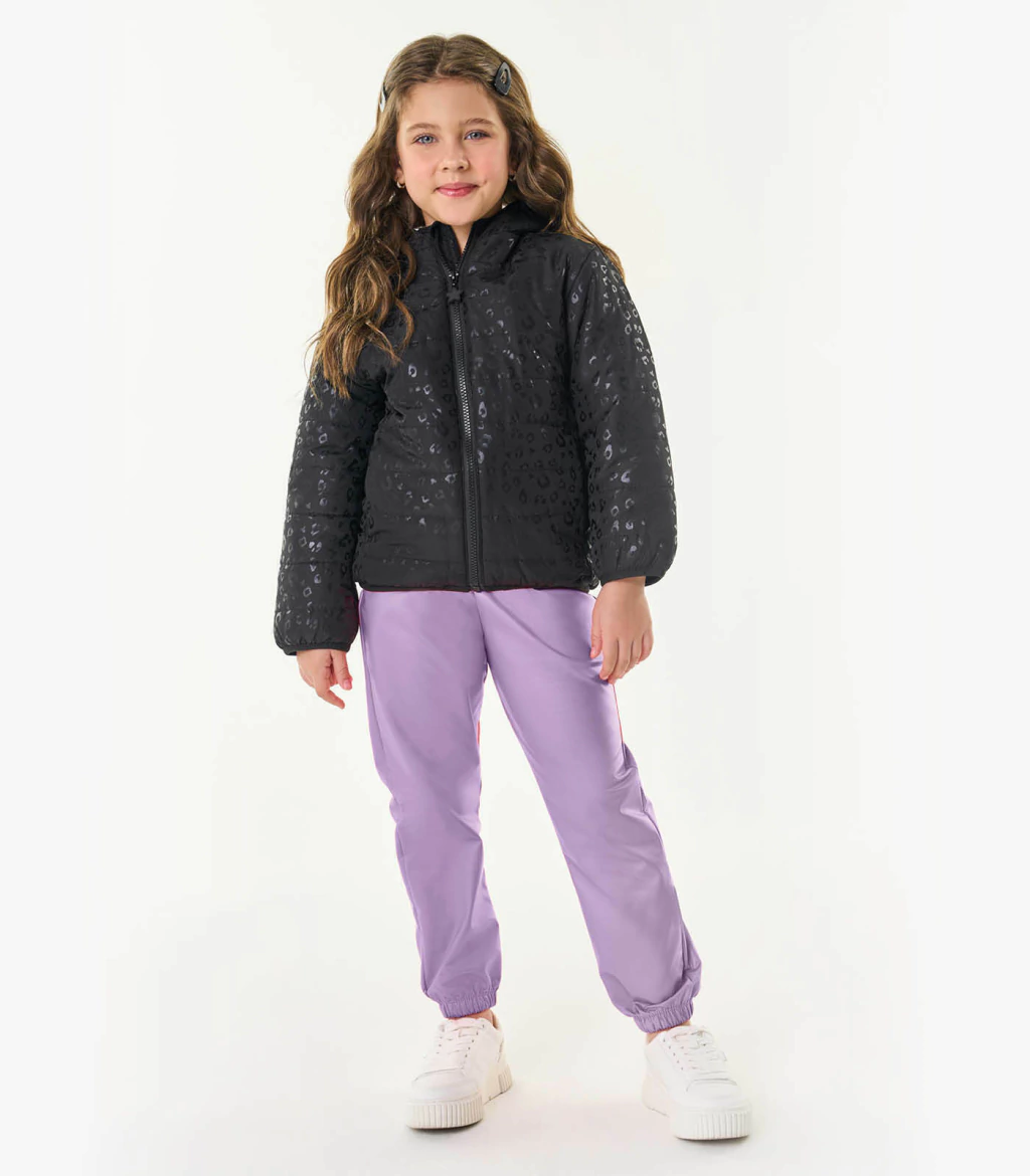 Disponível em cores vibrantes como Algodão Doce, Preto e Violeta Claro, permitindo escolher a que melhor combina com o estilo da sua filha.