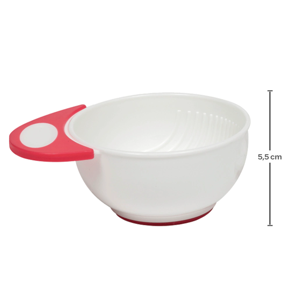 Composição: Bowl e Amassador: 100% Polipropileno (PP); Alças: 100% Borracha Termoplástica (TPR)