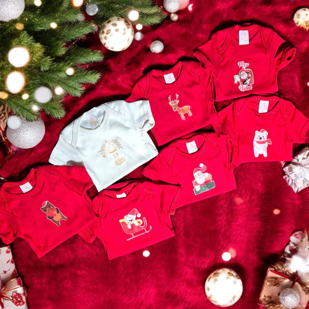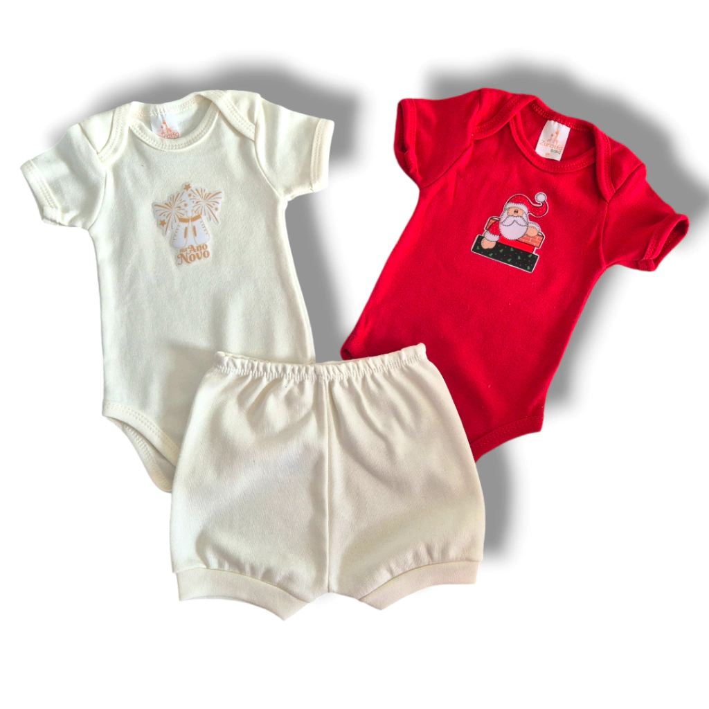 Adquira já este Kit Body de Natal para Bebê + Body de Ano Novo + Shorts Tapa Fralda e proporcione ao seu pequeno todo o encanto e elegância que as festas de fim de ano merecem!