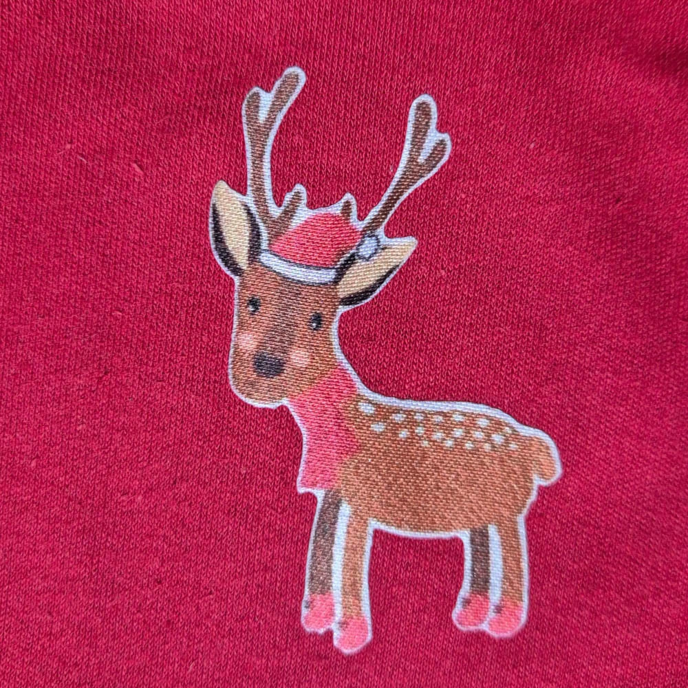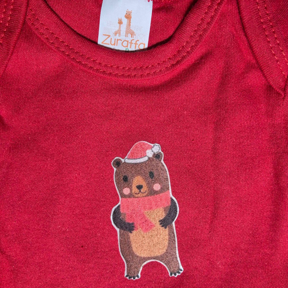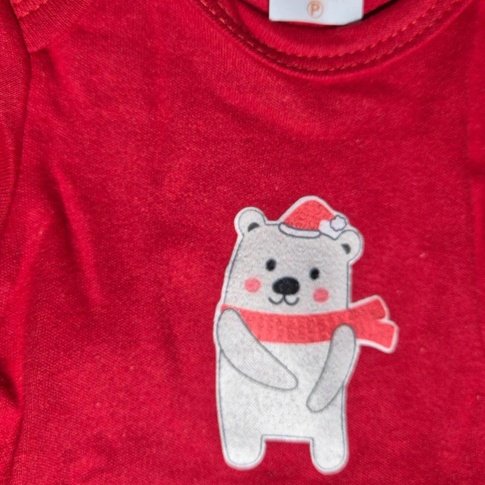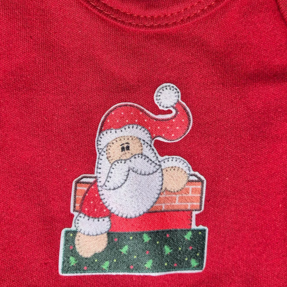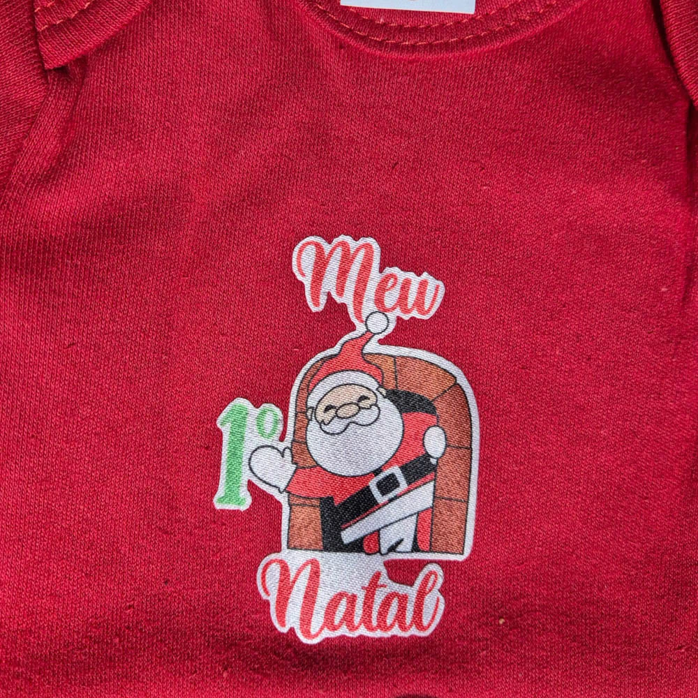 Body de Natal: Apresenta um body vermelho em suedine com estampa natalina, proporcionando um visual encantador para celebrar o Natal em grande estilo.