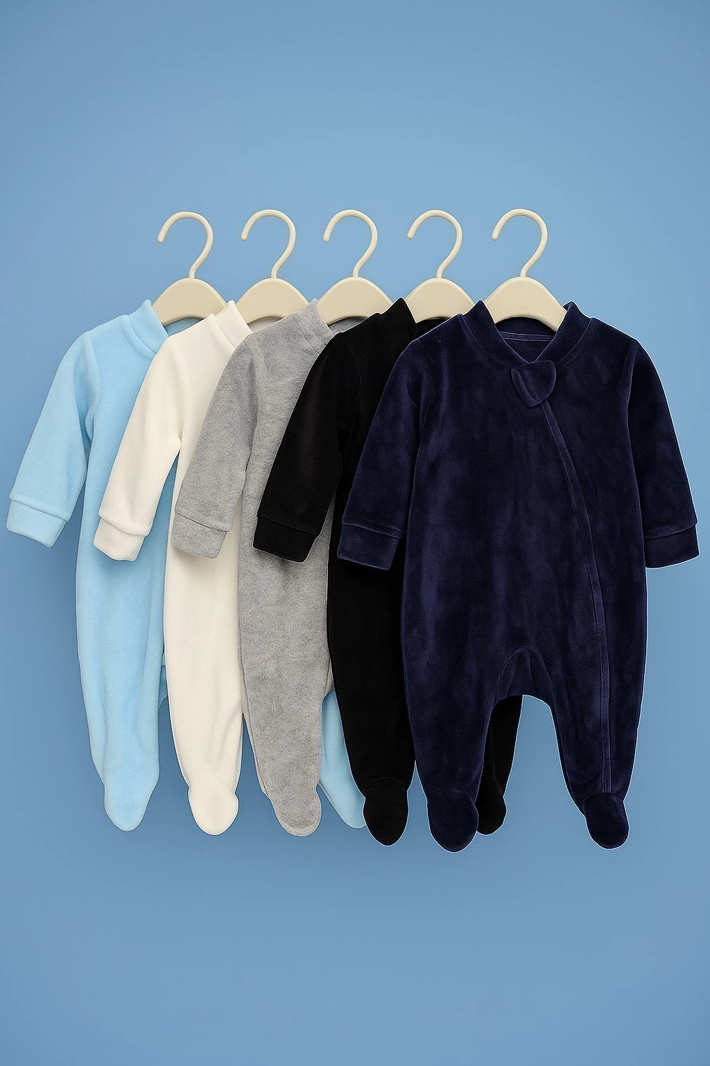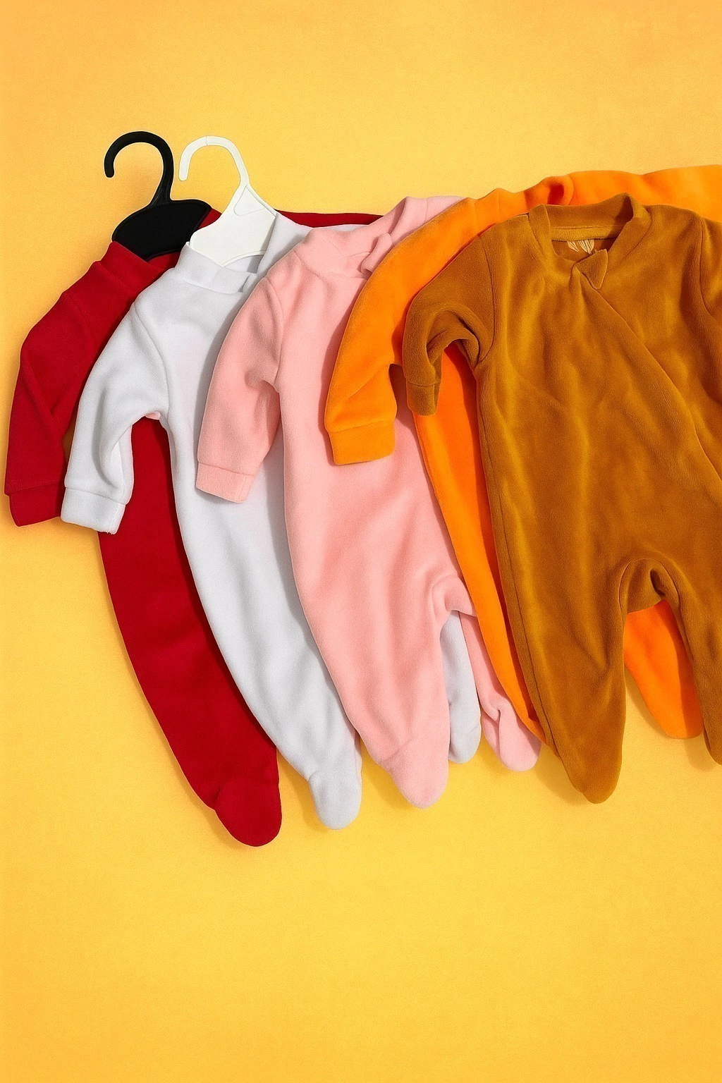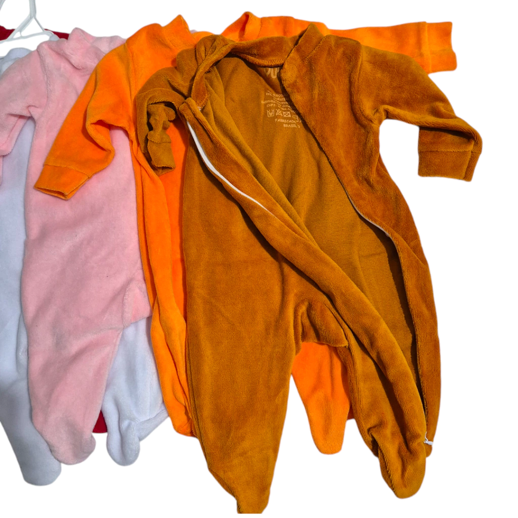 São 4 macacões em plush da marca Yuuupi, feitos com toque aveludado, macio e quentinho — perfeitos para maternidade, passeios e o dia a dia.