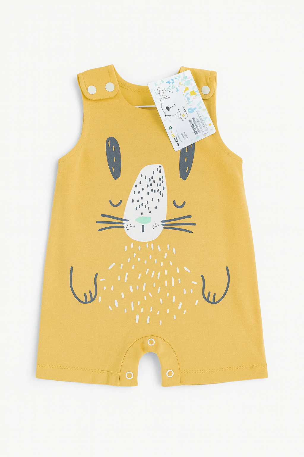 Lave o macacão à mão ou em ciclo delicado na máquina, com água fria, para preservar as cores e a maciez do algodão.