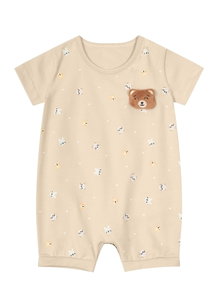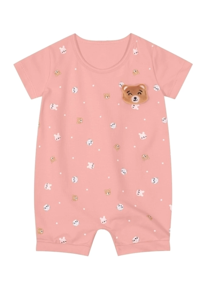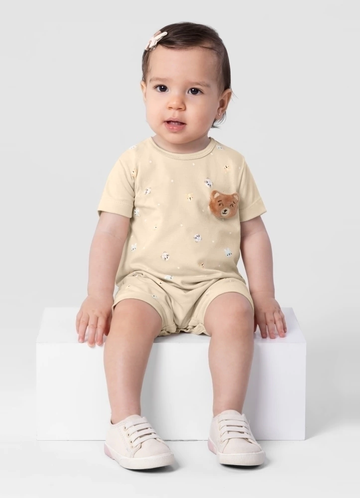 Nome: Macaquinho de bebê em Cotton Brandili UNISSEX com aplique alto relevo de ursinho romper menino banho de sol menina