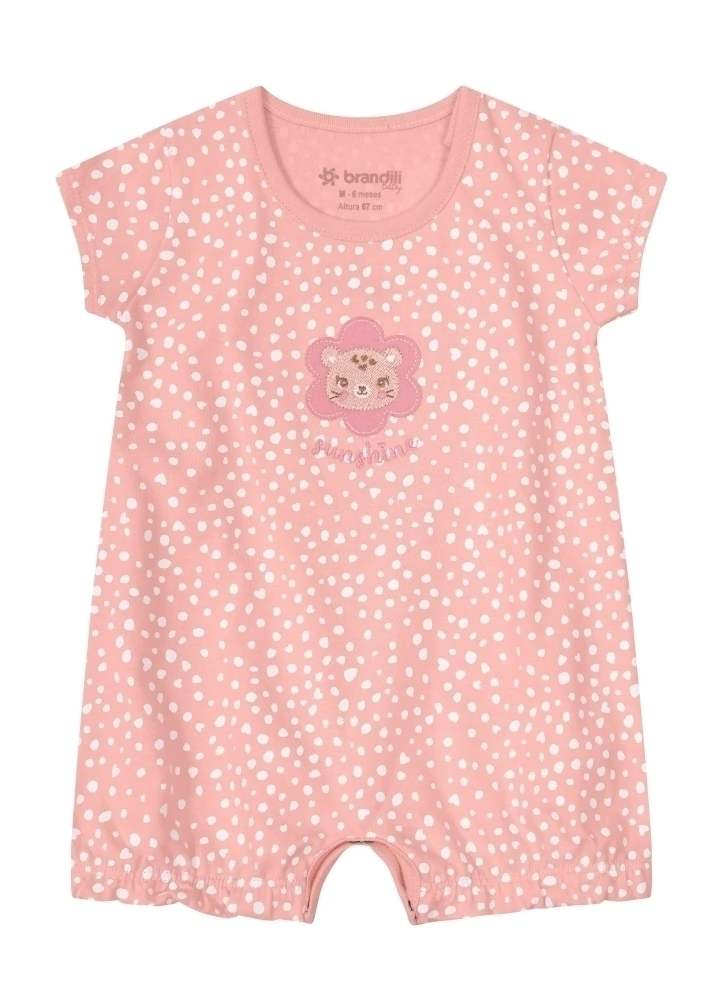 Apresentamos o encantador Macaquinho de Bebê Menina Gatinha Sunshine, ideal para os primeiros dias da sua pequena! Com cor salmão e confeccionado em meia malha, ele garante conforto e frescor.