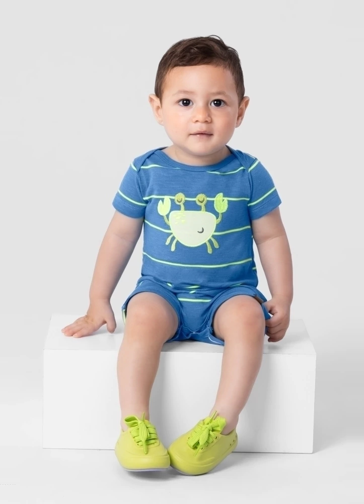 Macaquinho de Bebê Bordado de Carangueijo Meia Malha Listrada Brandili - RN Menino