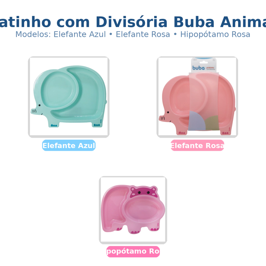 Desenvolvido pela Buba, o Pratinho com Divisória Animais é fabricado em 100% Polipropileno (PP), um material seguro e durável, ideal para a alimentação dos bebês a partir de 6 meses. Com seu design que apresenta um personagem divertido, como o Elefante (e outros animais disponíveis), e uma divisória inteligente, ele permite separar os alimentos, tornando a hora da refeição mais atraente e organizada. Este pratinho infantil foi pensado para estimular o interesse dos pequenos pela comida, transformando cada garfada em uma nova descoberta.