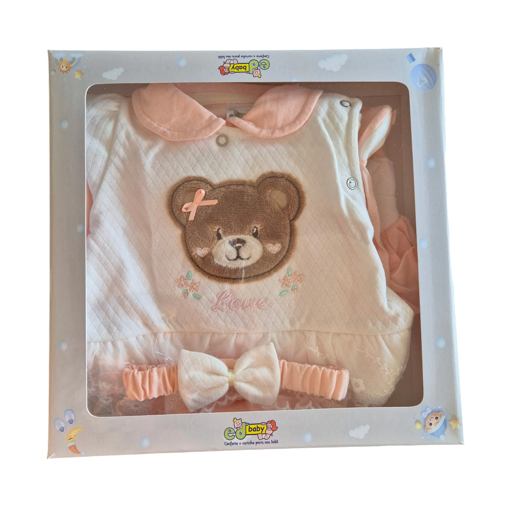 - Brinde: Um body e um mijão de algodão, práticos para facilitar o vestir do bebê.