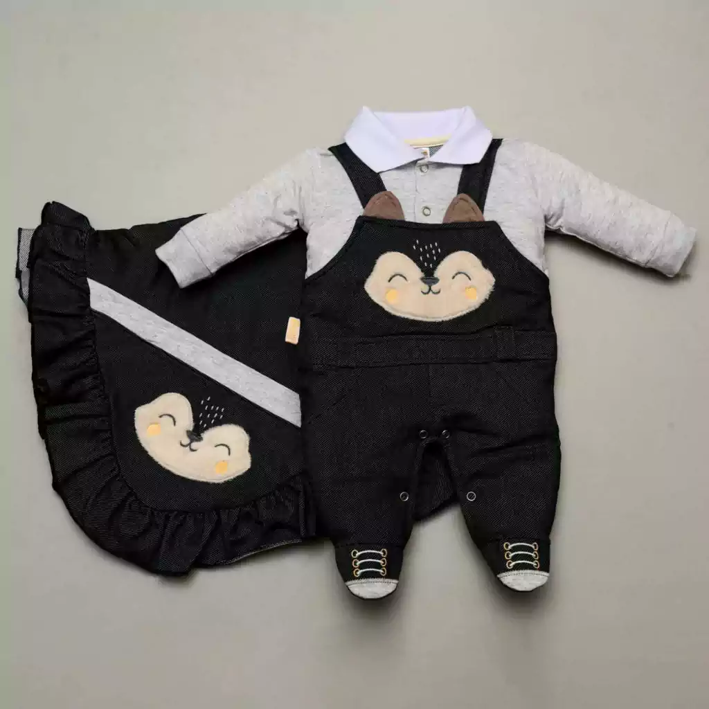- Macacão com bordado e detalhes: Confortável e estiloso, ideal para o dia da saída.