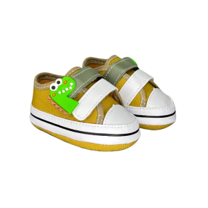O Tênis de Bebê Dino é perfeito para bebês que ainda não andam. Leve, macio e cheio de charme, garante conforto e segurança para os pezinhos. O fecho em velcro facilita o calçar e o detalhe do dinossauro deixa o look divertido e fofo.
