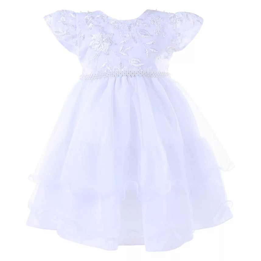 VESTIDO DE FESTA, ENSAIO, BATIZADO PRA BEBÊ BORDADO E PEROLADO SAIA COM BABADOS CINZA E BRANCO - Nelu Pala Bordada Pérola E Saia Tule