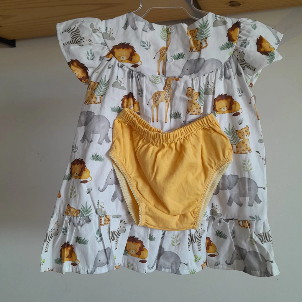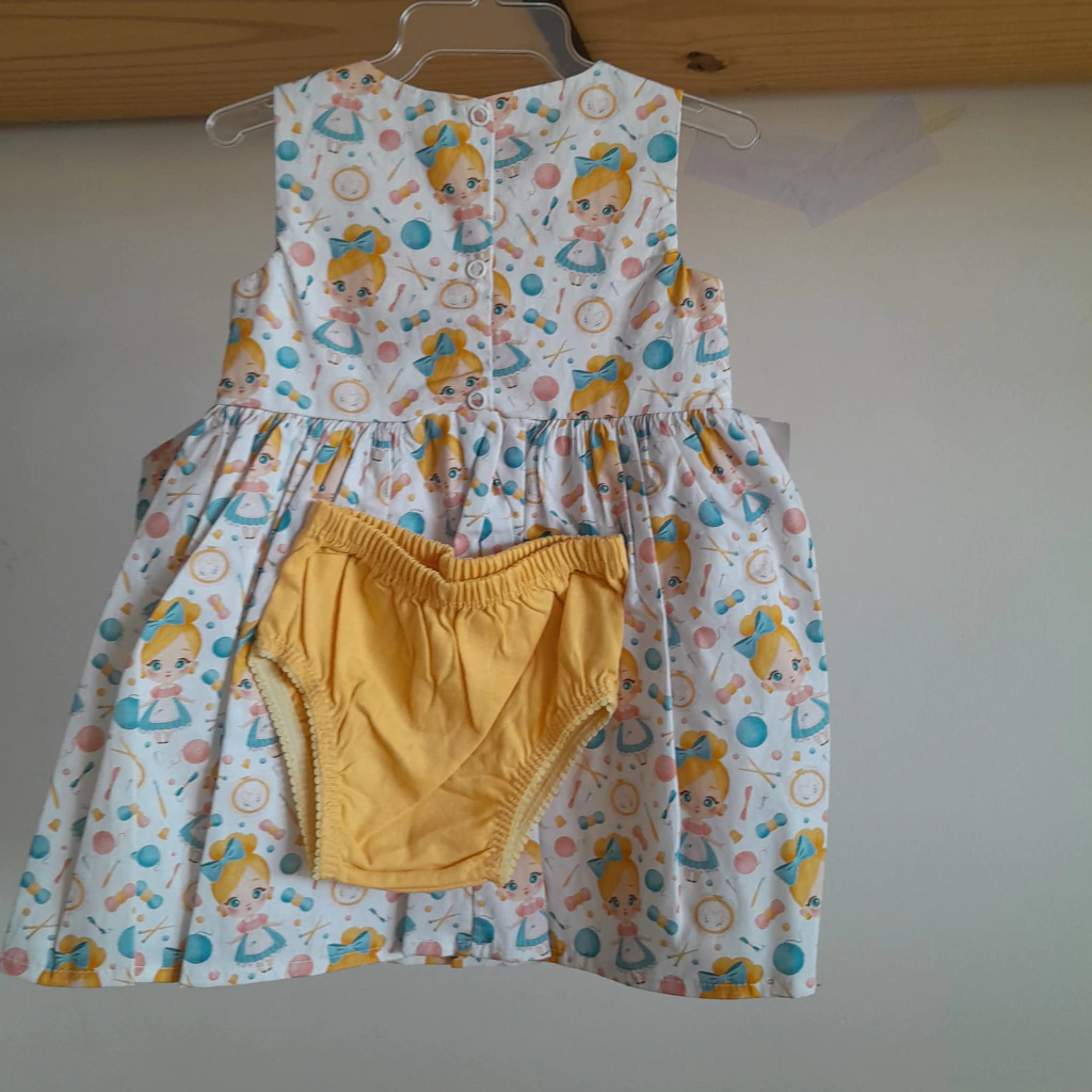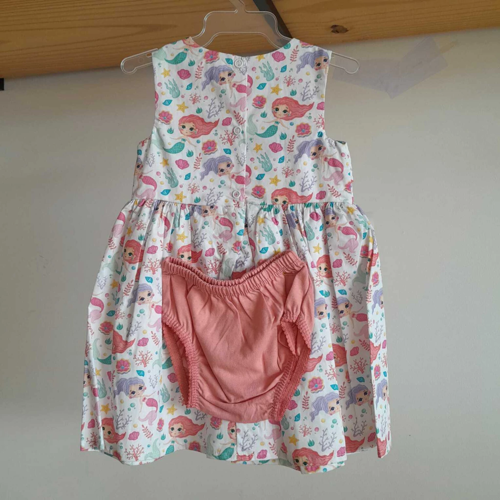 VESTIDO INFANTIL ESTAPAMPADO COM CALCINHA 100% ALGODÃO - 2 PEÇAS - VESTIDO DE BEBÊ COM TAPA FRALDA