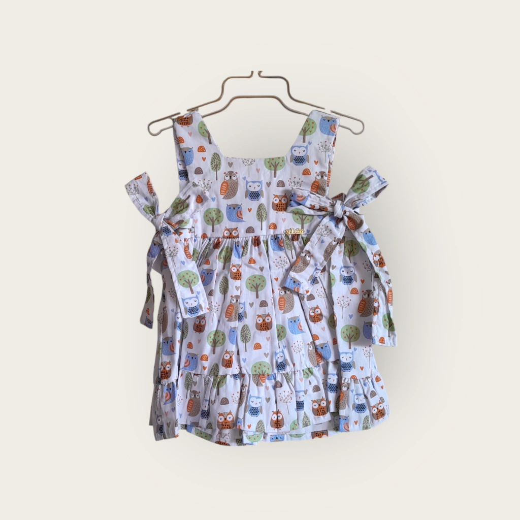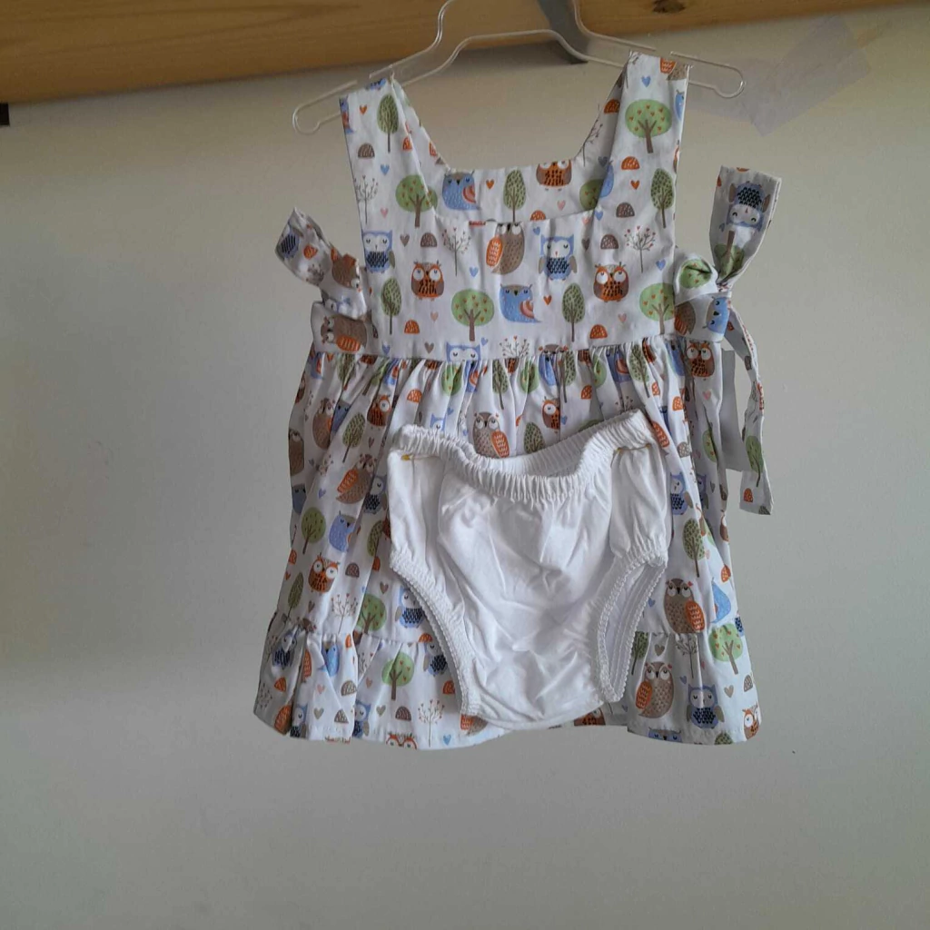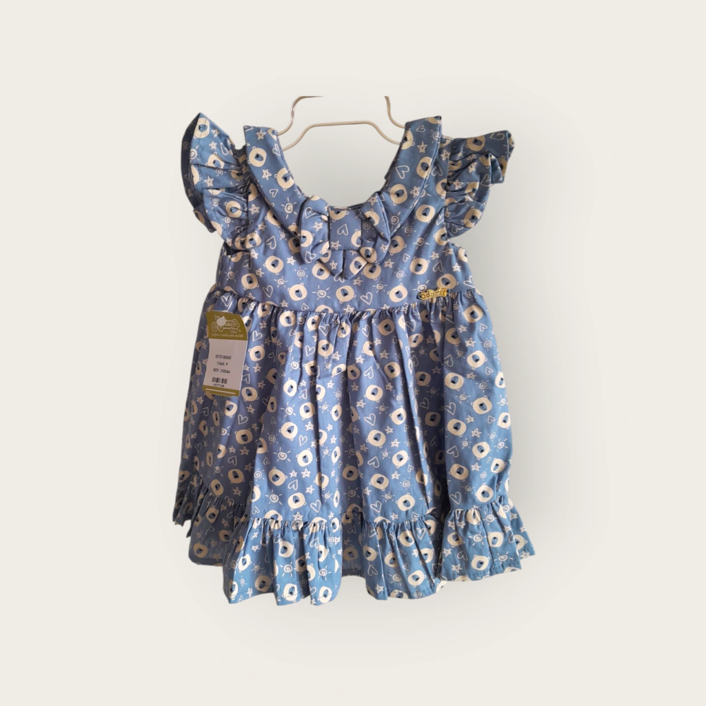 VESTIDO INFANTIL ESTAPAMPADO COM CALCINHA 100% ALGODÃO - 2 PEÇAS - VESTIDO DE BEBÊ COM TAPA FRALDA