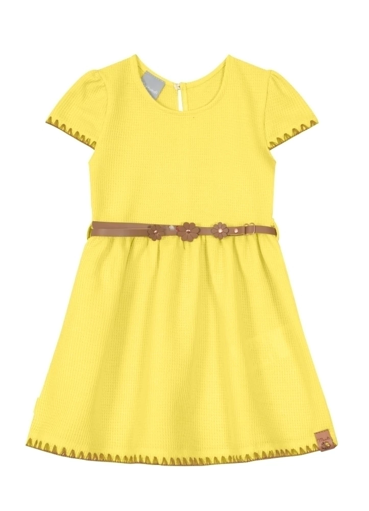 Vestido Infantil Ribana Aurora com aplique e cinto Mundi - Amarelo