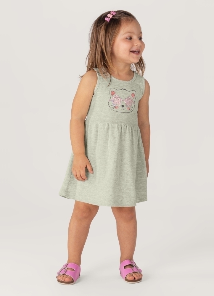 Conforto e estilo são as palavras-chave! Feito com tecido de alta qualidade, este vestido é ideal para garantir que sua garota esteja sempre confortável enquanto arrasa nos passeios. E quem pode resistir a uma gatinha de óculos? É a combinação perfeita de fofura e elegância!